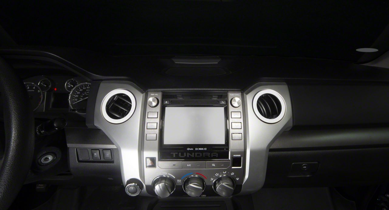 Interior Styling. Add a new interior look to your Toyota Tundra with this set of A/C Vent Ring Cap Accent Trim; Gloss White. These 4 pieces give a cool style appearance and they are positioned on each chrome vent ring.