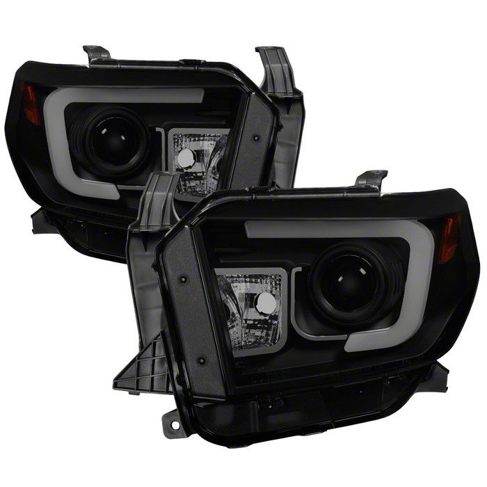 Application. These Black Smoke Projector Headlights with Light Bar DRL fit all 2014-2018 Toyota Tundra SR and SR5 models.