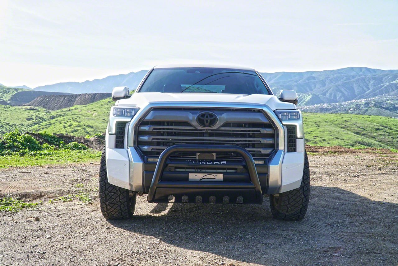 Amplified Front-End Protection. The Bull Bar with Skid Plate provides robust protection for your vehicle's front end, combining style and functionality. Specifically designed for 2022-2026 Toyota Tundra models, this bull bar enhances your vehicle's rugged appearance while offering additional defense against road debris and minor impacts.