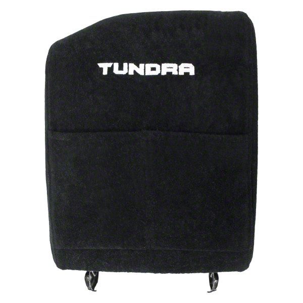 Black, Durable, and Sleek. This Center Console Cover with Tundra Logo features a durable cotton terry velour construction. It comes with storage pockets to hold some items and keep them from falling when your open the console. This protective cover is also machine washable and features a plush, soft feel for added comfort when resting your arm. Moreover, it comes in a sleek, black fabric that adds a fierce appeal with the embroidered Tundra logo.