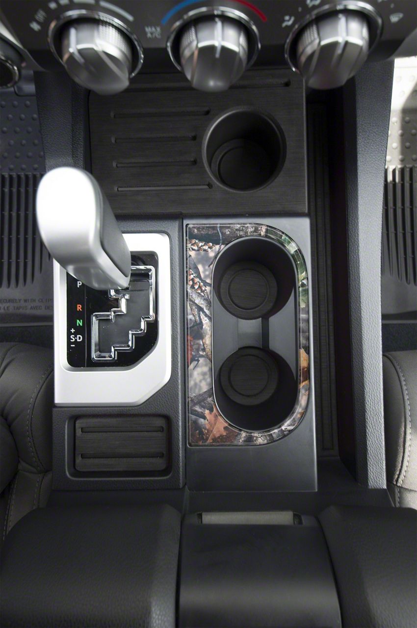 Appearance. Add a new interior look to your Toyota Tundra by installing Center Console Cup Holder Replacement Accent Trim; Camouflage. This piece adds style and protection to your vehicle and replaces the chrome OEM accent on the center console cup holder.