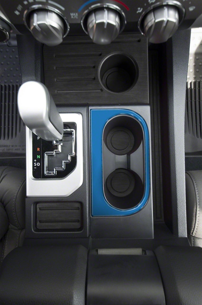 Appearance. Add a new interior look to your Toyota Tundra by installing Center Console Cup Holder Replacement Accent Trim; Cavalry Blue. This piece adds style and protection to your vehicle and replaces the chrome OEM accent on the center console cup holder.