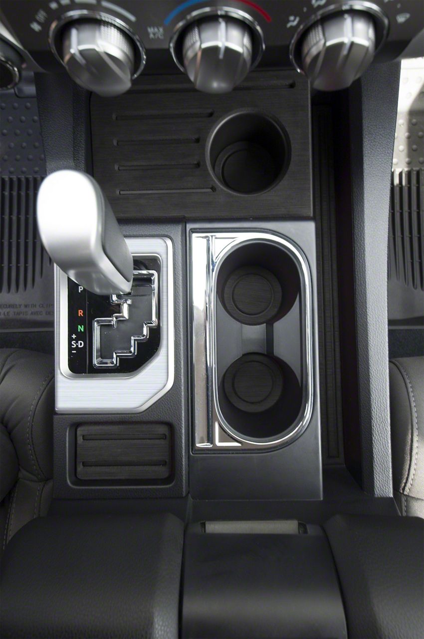 Interior Styling. Add a new interior look to your Toyota Tundra with this Center Console Shifter Accent Trim; Brushed Silver. This pieces gives a cool style appearance and is positioned on the center console shifter.