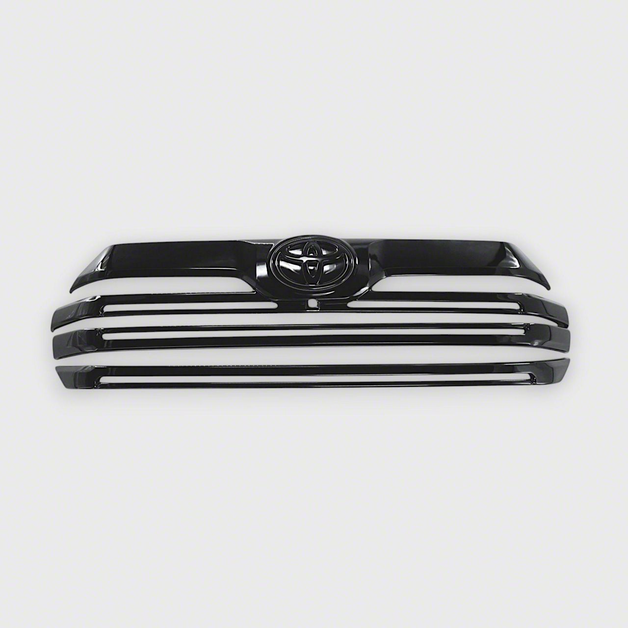 Stylish Front-End Upgrade. The Chrome Delete Upper Grille Overlay provides a bold visual enhancement for your 2022–2026 Toyota Tundra Limited, SR, or SR5. Designed to modernize the vehicle’s front profile, this overlay conceals factory chrome accents with a sleek, glossy black finish. Its four-piece layout delivers a cohesive and aggressive look while maintaining OEM styling integrity.