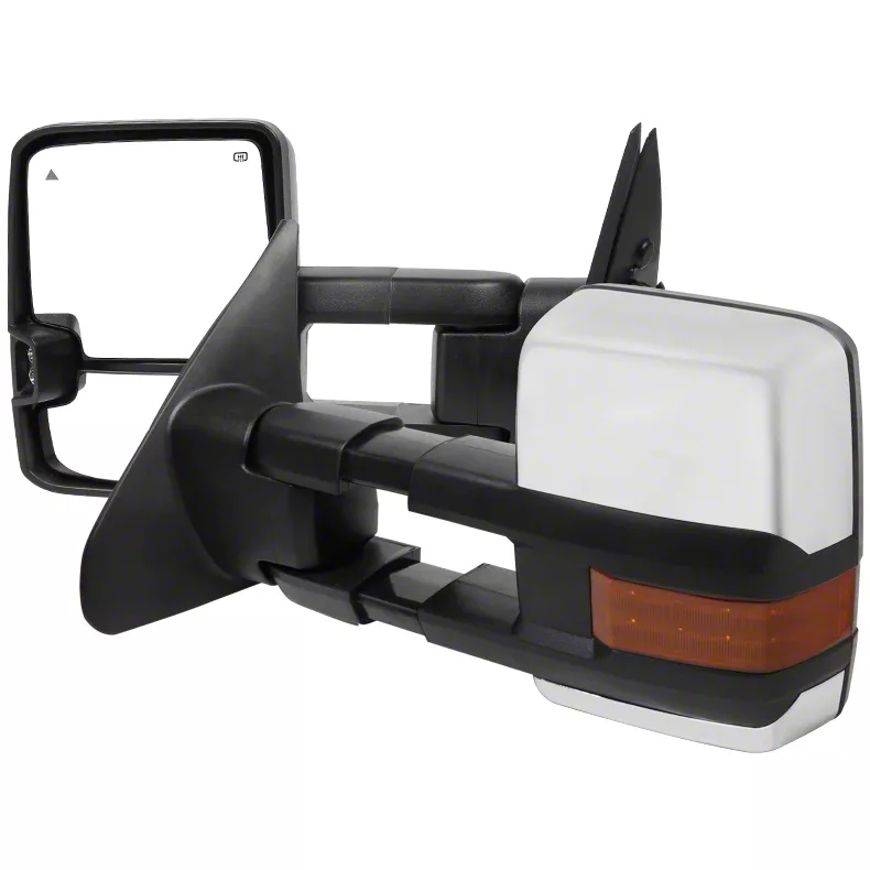 Enhanced Road Safety. Ensure your safety when towing by installing these Chrome Powered Heated Towing Mirrors with LED Turn Signal on your Tundra. These side mirrors are built to safeguard the side and rear views even on foggy, rainy, or snowy weather conditions. They also feature telescopic style mirrors with convex spotter glasses for longer and wider viewing angles.