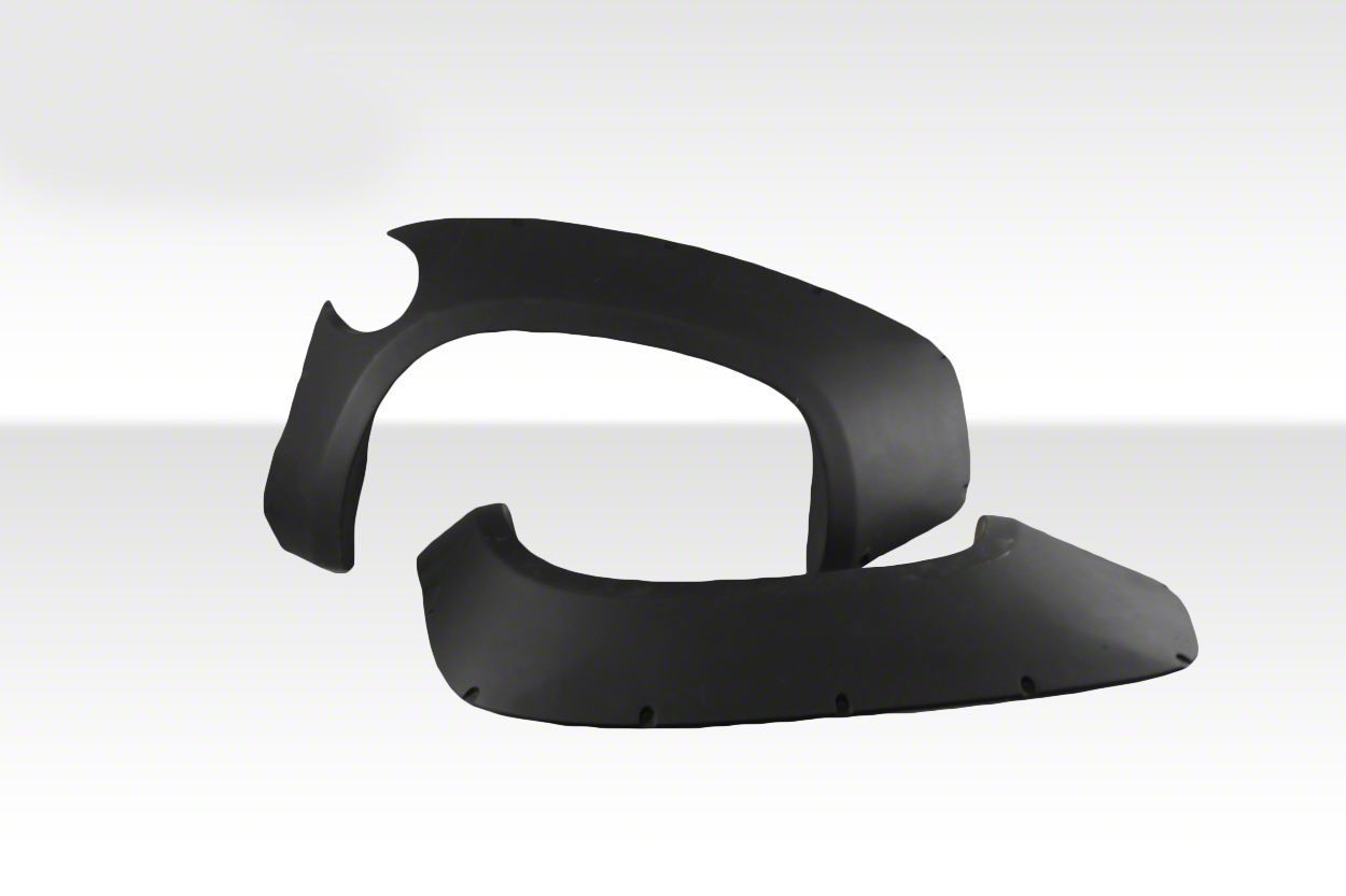 Hand-Laid Fiberglass-Reinforced Plastics. These fender flares are hand-laid from fiberglass-reinforced plastics, an impact-resistant, highly durable proprietary blend. They are finished with an unpainted coat, giving you the freedom to choose their paint.