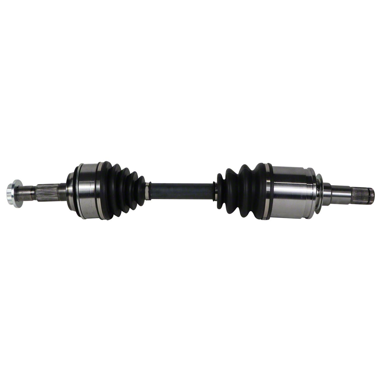 Construction and Features. Featuring a durable polished chrome and matte black finish, this CV axle assembly is built to withstand harsh conditions. It uses spline rolled construction for enhanced strength and includes high-quality stainless-steel clamps for secure, long-lasting performance. This assembly delivers reliable power transfer while minimizing vibrations, making it an essential upgrade for your vehicle’s drivetrain.