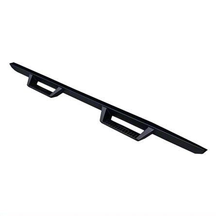 Construction and Appearance. These side step bars are constructed from a one-piece mild steel design, ensuring strength and longevity. Featuring a sleek matte black finish, they are resistant to corrosion and wear. The welded end caps add to their durability and provide a clean, finished look.