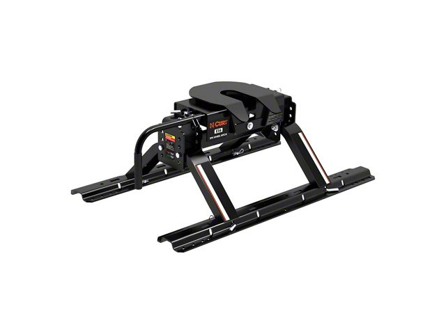 Connect Your 5th Wheel Trailer. Thanks to this E16 5th Wheel Trailer Hitch with Rails, you can easily attach your trailer to your vehicle’s rear end. With 16,000-Pound gross trailer weight, this hitch can handle most trailers. It’s also adjustable, offering four height options between 13-17 Inches and 10 degrees of lateral movement thanks to the dual axes that enable easy pivoting. This automatically locking hitch is operated using a single handle and comes with an anti-rattle skid plate to reduce noise.