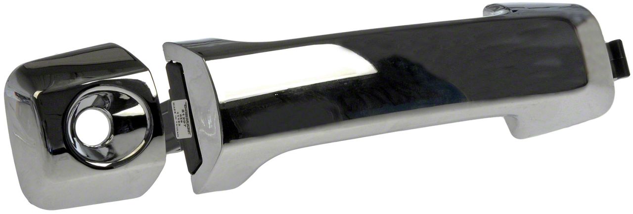 Construction and Appearance. This Exterior Door Handle is made from plastic with a chrome finish that mirrors your factory model. There is a key lock hole.