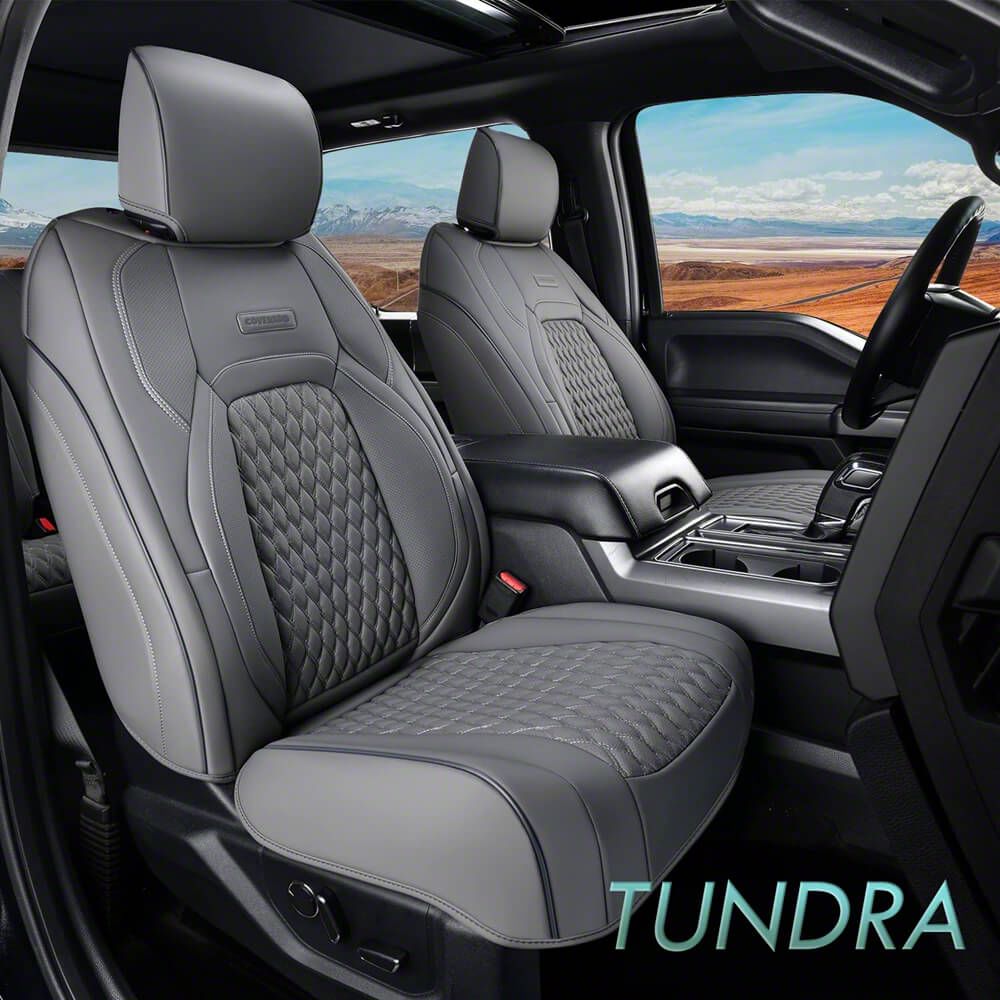 Stylish Protection for Daily Use. The Faux Leather Custom Front Seat Covers are designed to safeguard the front seats of your 2014 to 2021 Tundra CrewMax while enhancing interior style. These covers deliver a factory-style appearance with a comfortable feel and dependable defense against everyday wear and tear.