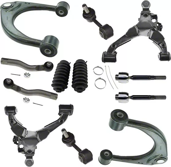 Efficient Handling. Elevate the performance of your Tundra with the Front Control Arms with Sway Bar Links and Tie Rods. This complete set ensures enhanced handling and improved ride quality, providing a noticeable upgrade over your vehicle's stock components. This kit includes sturdy front control arms that offer superior suspension articulation, maximizing wheel alignment and providing smooth and responsive handling. They are meticulously designed to withstand rough and tough driving conditions, ensuring long-lasting durability.