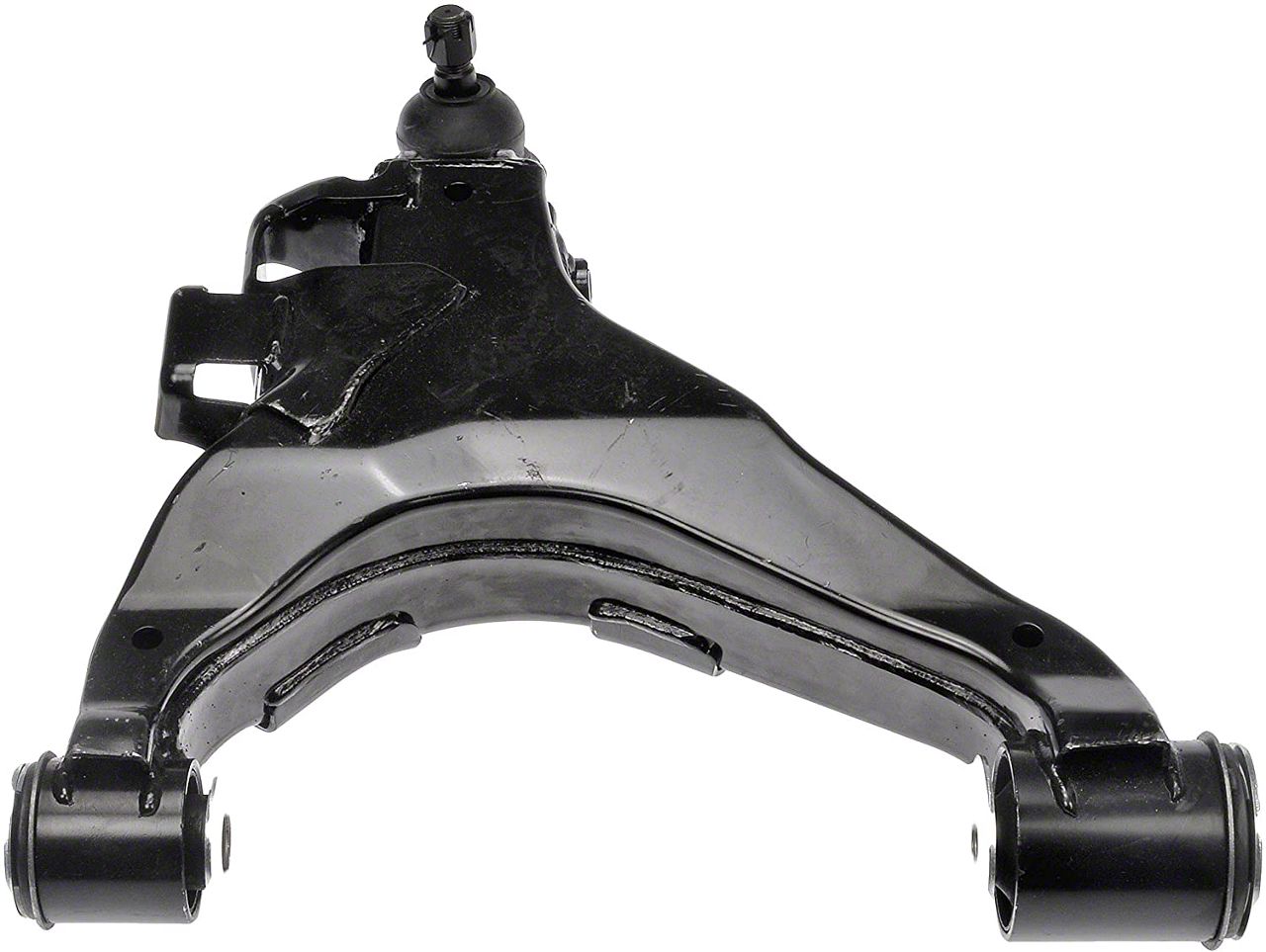 Construction and Appearance. Made from stamped steel, this control arm is built for strength and longevity. Its durable construction withstands the demands of daily driving, providing reliable performance and extended service life.