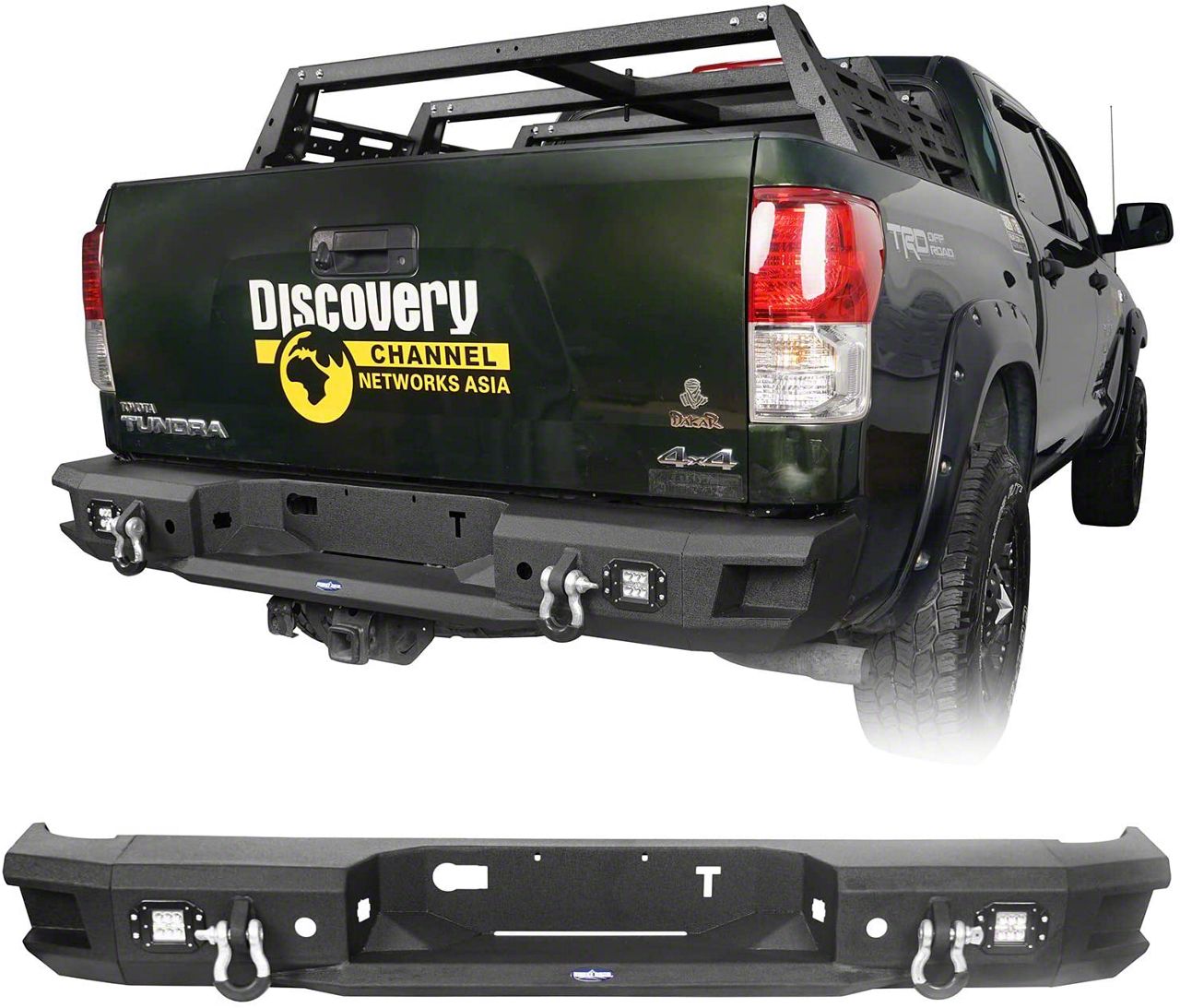 Application. Hooke Road made the Full Width Rear Bumper for the 2007-2013 Toyota Tundra models.