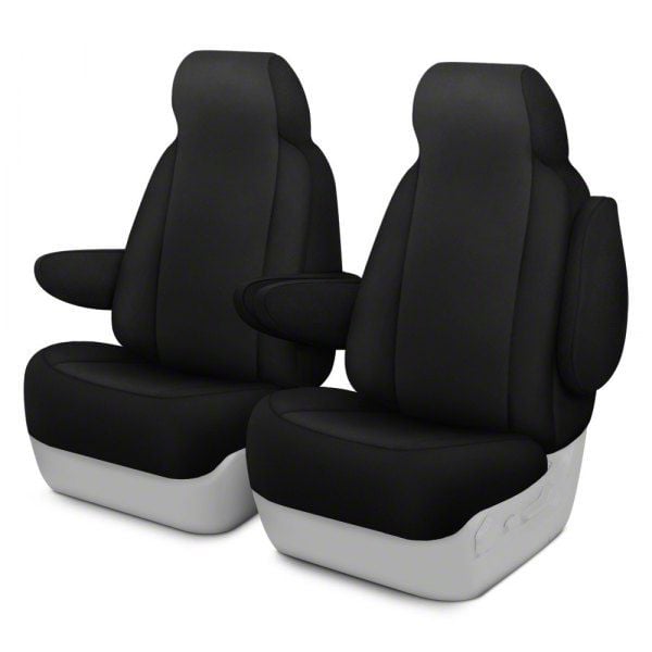Genuine Neoprene™ 1st Row Black Custom Seat Covers (K023-71-0-UBC) by Dash Designs®. 50/50 Low Back Buckets, with Recessed Headrests, with Lumbar Handle on Driver's Side Backrest. A technological breakthrough and a fabulous material. Genuine Neoprene™ is a custom crafted and very durable Nylon-bonded seat cover material with a robust foam backing. In short, this amazing waterproof fabric is like a ‘wet suit’ for the interior of your vehicle.