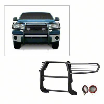 Enhanced Front-End Protection and Visibility. The Grille Guard with 5.30-inch Red Round Flood LED Lights for the 2007-2021 Tundra offers enhanced front-end protection while improving visibility. Constructed from high-strength steel and finished in durable black, this grille guard provides robust defense against road debris, impacts, and other potential hazards. The integrated red round flood LED lights offer superior illumination, ensuring better visibility during nighttime driving and off-road adventures. This grille guard combines functionality with a rugged appearance, making it an essential upgrade for Tundra owners seeking both protection and style.