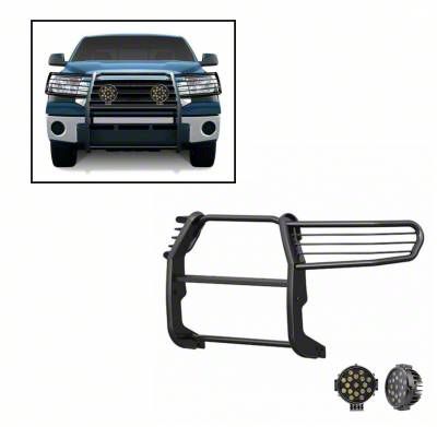 Robust Enhancement. The Grille Guard with 7-Inch Black Round LED Lights not only elevates the appearance of your vehicle but also provides substantial protection. Designed to shield the front of your Toyota Tundra from impacts and road debris, this accessory is perfect for those who value both aesthetics and functionality.