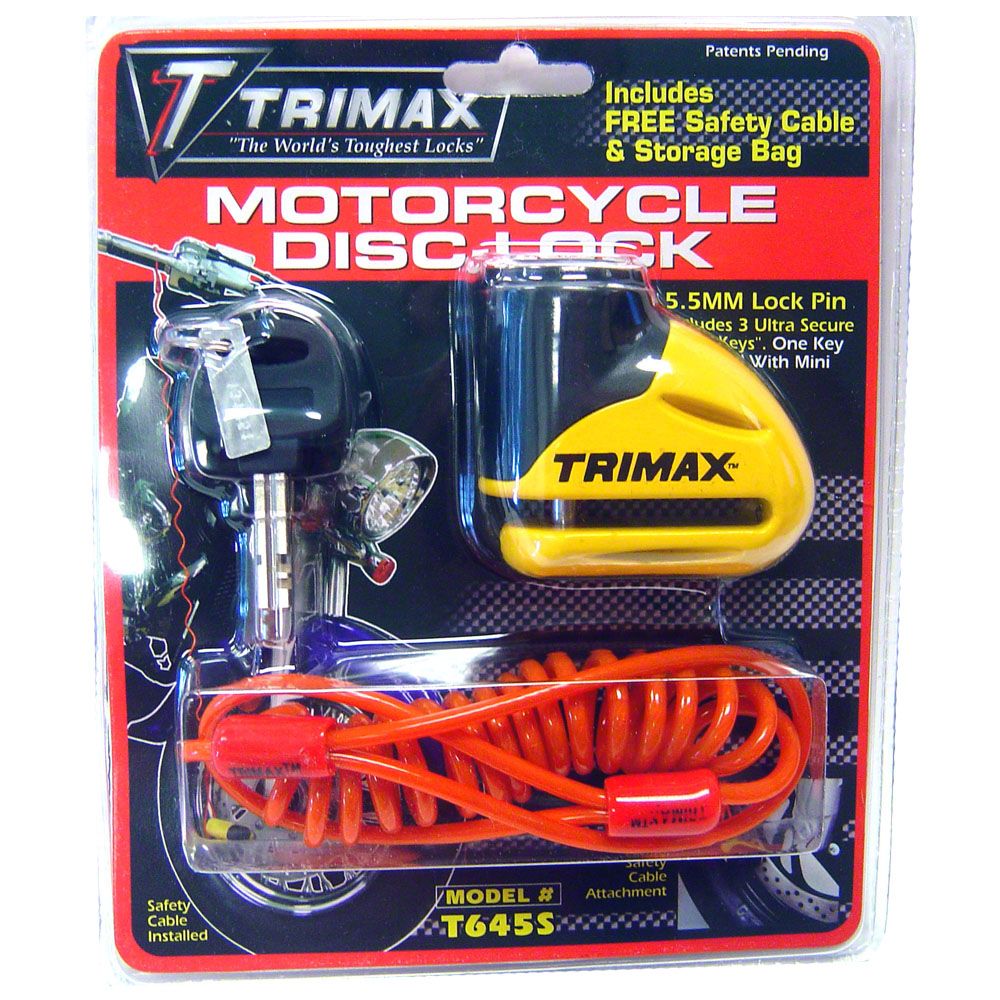 YELLOW Hardened Metal Disc Lock 5.5MM PIN (Short Throat) With Pouch & Cable