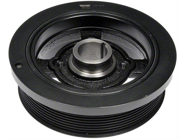 Impressive Strength and Durability. This harmonic balancer is made from heavy-duty ductile steel, and it has a stress-resistant rubber bond. Thanks to its sturdy construction, improved tensile and impact strength are guaranteed. It has a black finish for long-lasting performance and resistance to corrosion from the elements. This harmonic balancer has a 32 mm inside diameter and 176 mm outside diameter.