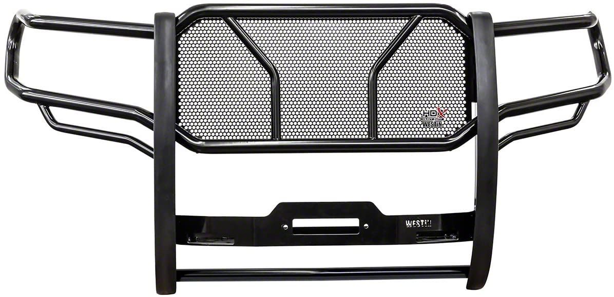 Fortifies Front End Protection. Gear your truck up with this Black HDX Winch Mount Grille Guard to protect it from various road hazards. This grille guard is crafted with a full punch plate grille and durable uprights and wings to prevent road debris from damaging your truck’s vital front end components. Furthermore, it comes with a winch tray that is designed to hold a medium-sized winch that’s up to 10.25-inch tall with ratings of 8,000 to 12,000 pounds.