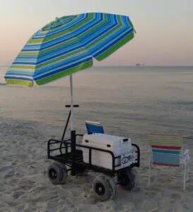 Efficient Beach Transport. The High Sands Beach Buddy provides a large 48 x 20 x 11-inch cargo area, capable of carrying up to 350 pounds of cargo. It helps make carrying items easier by eliminating the need to take multiple trips to get all your items.