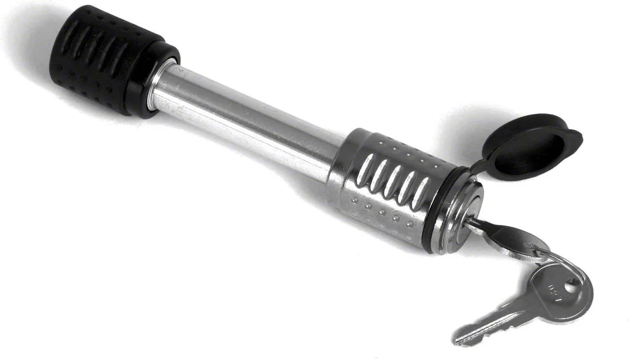 Description. The Heininger Advantage SportsRack Trailer Hitch Lock is great for securing your bike rack or trailer to the hitch. It has a 0.625" diameter and fits 2" x 2" trailer hitches (Class III and Class IV). Its inside width is 2.625" and has an overall length of 6". The weather-resistant lock features a covered key opening for added durability. It also comes with two keys for your safety and convenience.