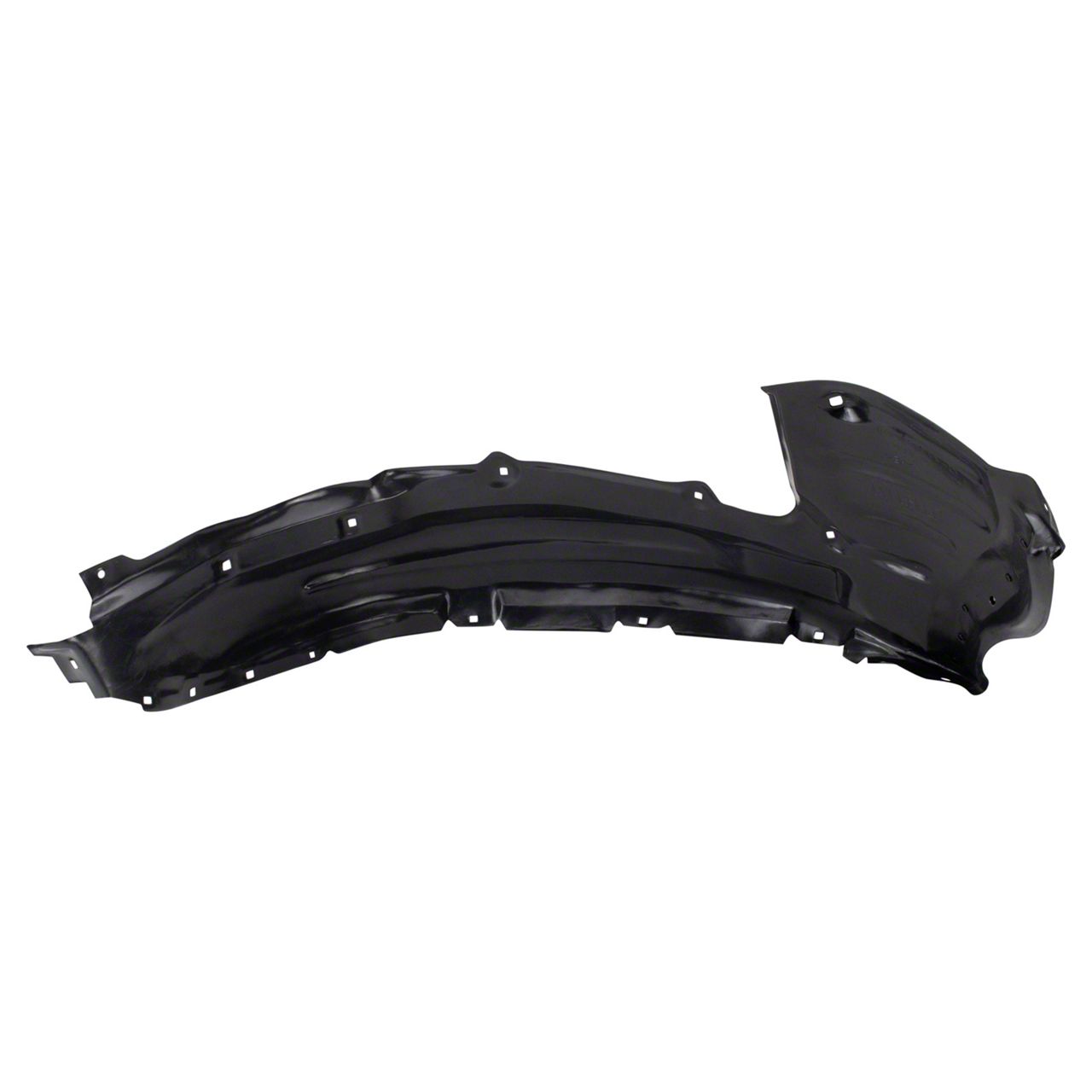 Construction and Appearance. Made from durable plastic, this inner fender liner provides a sturdy and resilient barrier against environmental elements. It features a black finish that resists wear and abrasion, ensuring long-lasting performance and a clean appearance in both the engine bay and wheel well.