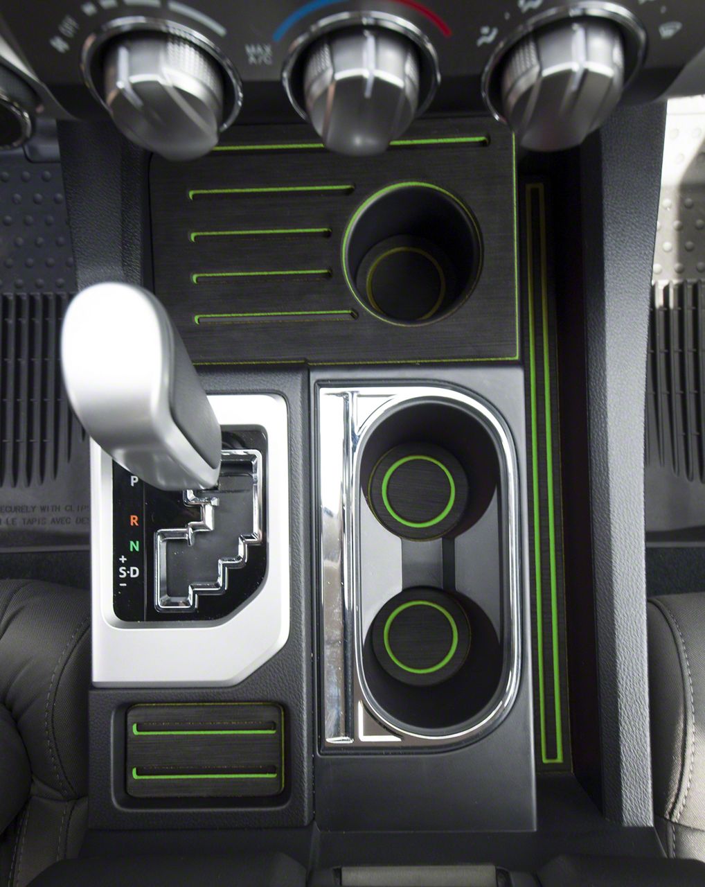 Improve The Look Of Your Cup Holders. Add a new interior look to your Toyota Tundra by installing Interior Cup Holder Foam Inserts; Black/Green. This piece adds style and protection to your vehicle and is fittingly positioned on top of the rear cup holder.