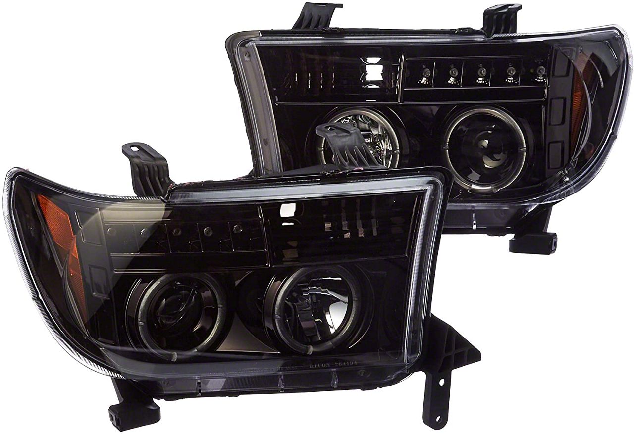 Application. These LED Halo DRL Projector Headlights with Black Housings and Smoked Lenses are designed for use on all the 2007-2013 Toyota Tundra models.