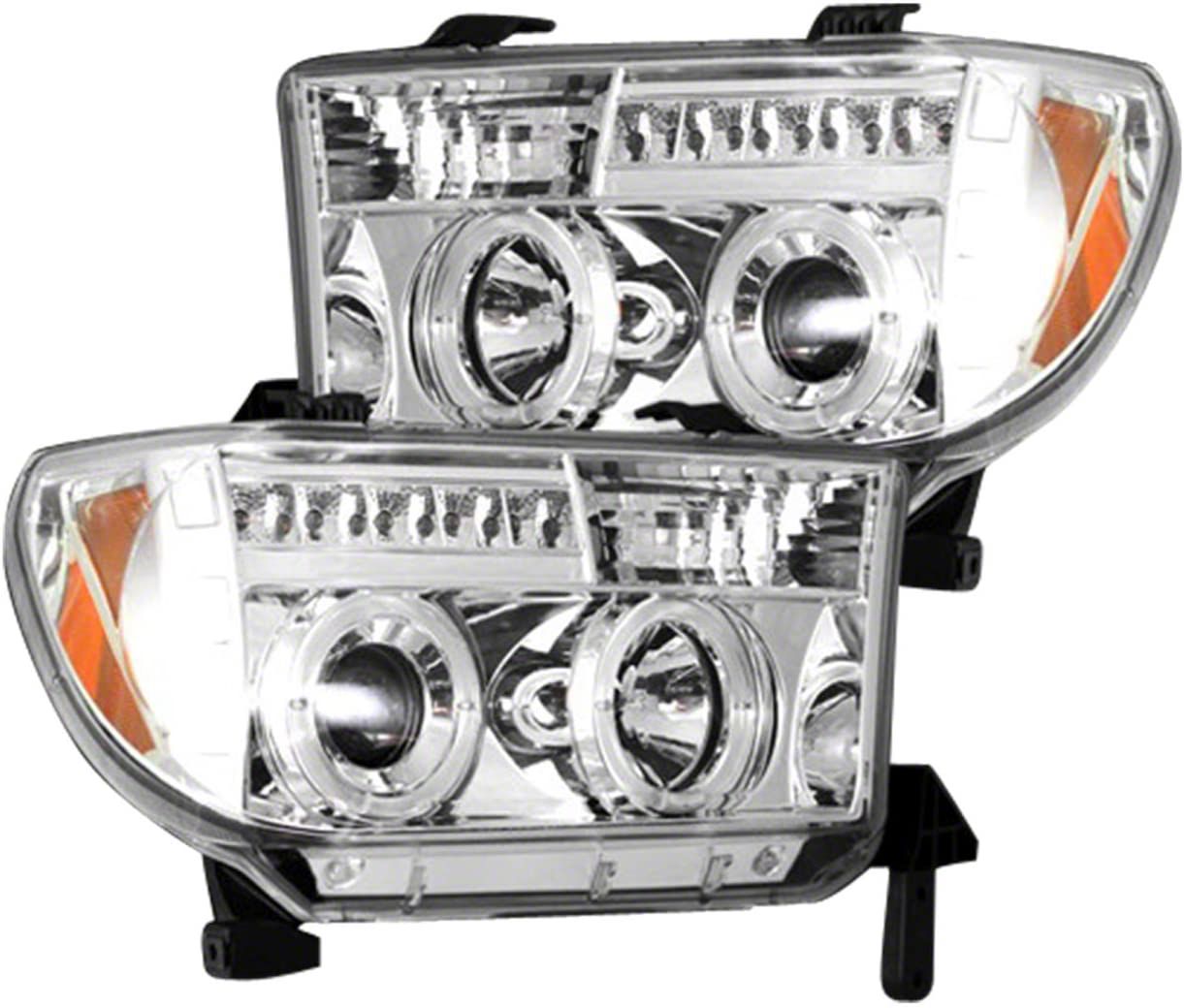 Powerful Headlights. Give a show-quality look to your Toyota Tundra with these LED Halo DRL Projector Headlights with Chrome Housings and Clear Lenses. They offer powerful brightness that allows you to see more clearly and deeply into the night. Despite their remarkable brilliance, these headlights are efficient so you can use them without drawing too much power from your vehicle. And with their aggressive styling, these headlights are guaranteed to set your truck apart from the rest of the pickup trucks on or off the roads.