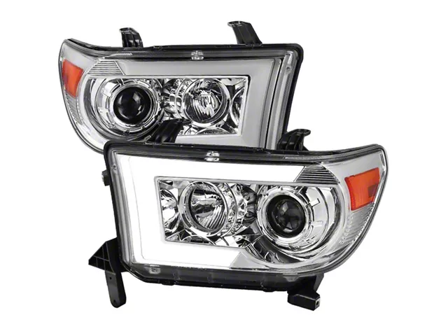Application. These LED Light Bar Switchback Sequential Projector Headlights with Chrome housing are created to fit 2007-2013 Toyota Tundra models without level adjusters.