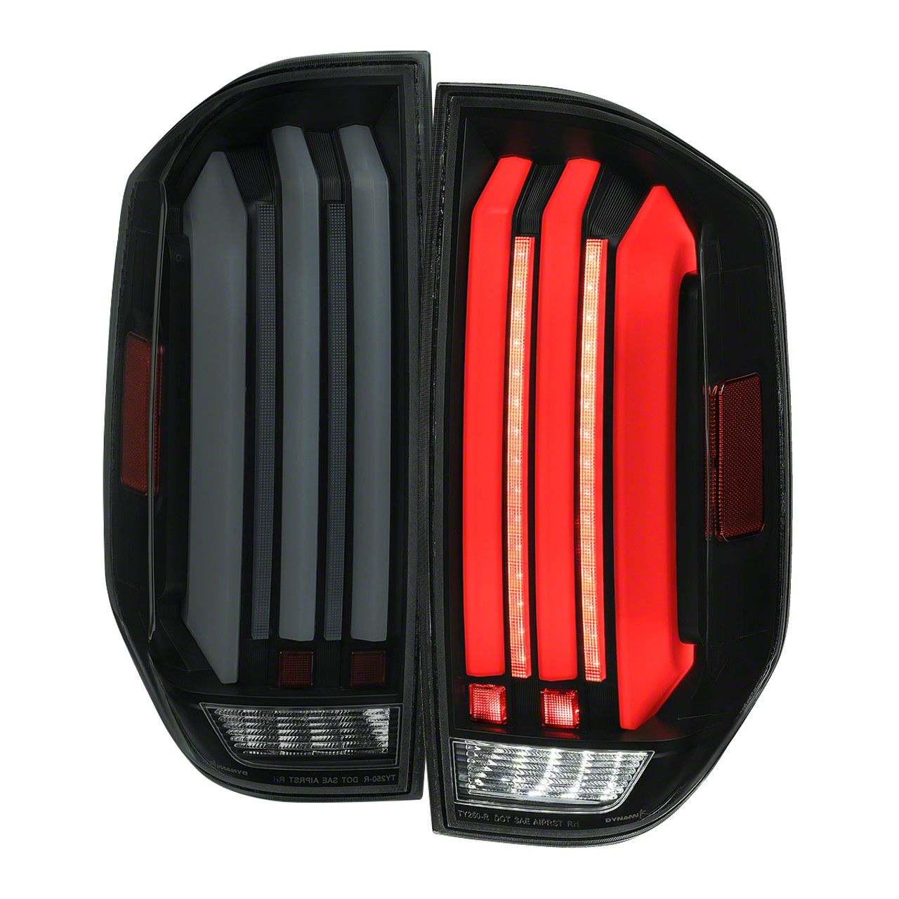 Aggressive LED Tail Lights for Enhanced Safety. The LED Tail Lights feature a smoked lens and matte black housing, offering your Tundra a sleek, aggressive look while improving rear-end visibility for safer driving. These high-intensity LED lights are designed to ensure better illumination and safety on the road.