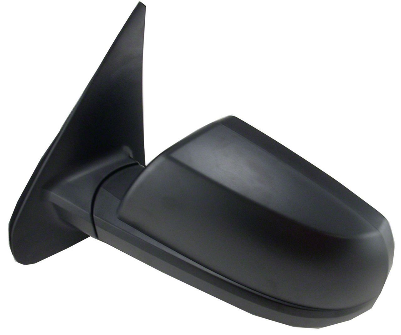 Construction and Appearance. This side mirror features a textured black finish on both the cover and housing, offering a durable and factory-matched look. Made with quality materials, it includes a complete assembly with mirror glass, housing, and mounting bracket assembled for a seamless direct bolt-on replacement that meets or exceeds original equipment standards.