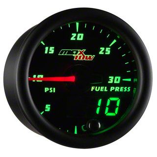 MaxTow 30 PSI Fuel Pressure Gauge; Black and Green (Universal; Some Adaptation May Be Required)