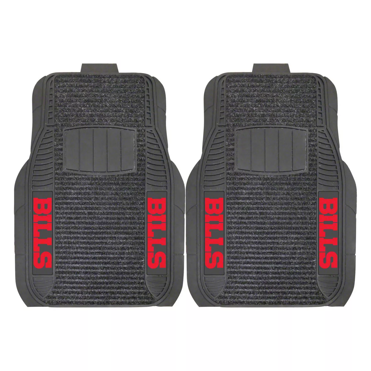 Application. These Molded Front Floor Mats with officially-licensed Buffalo Bills logo feature a universal design so they will fit most makes and models of vehicles. These Mats can be trimmed to fit if necessary. Sold as a set of two Mats.