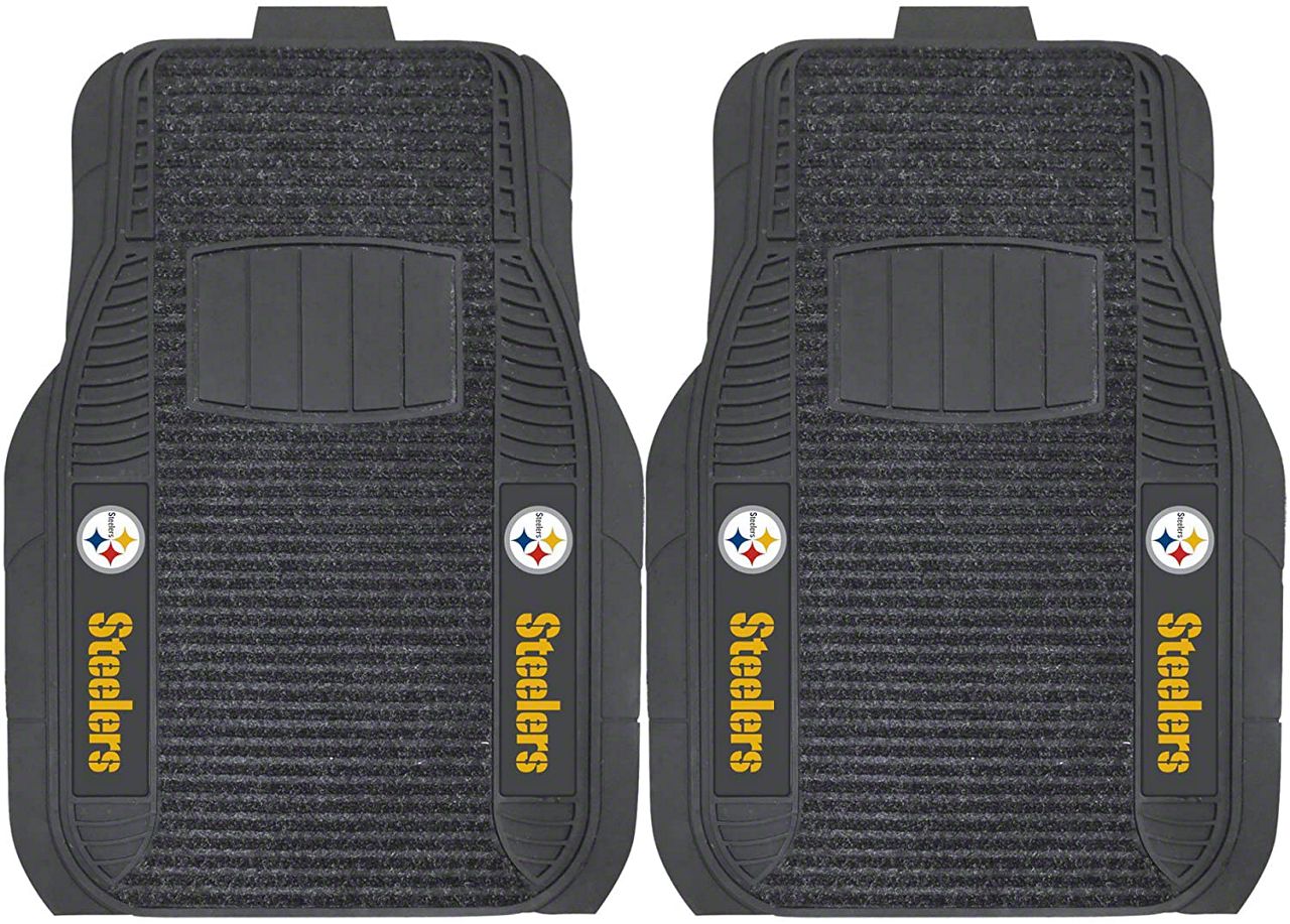 Application. These Molded Front Floor Mats with officially-licensed Pittsburgh Steelers logo feature a universal design so they will fit most makes and models of vehicles. These Mats can be trimmed to fit if necessary. Sold as a set of two Mats.