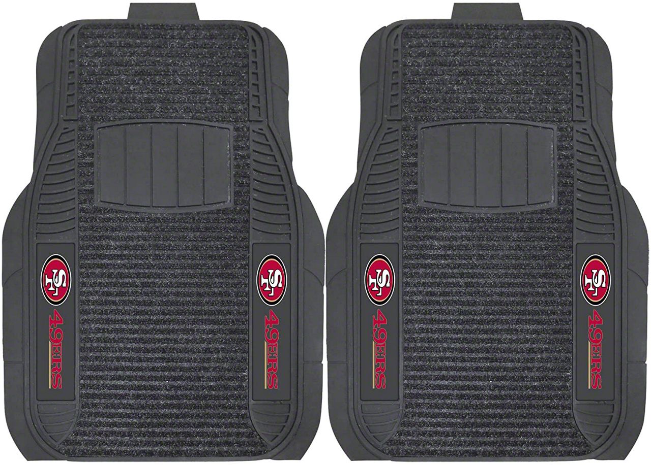 Application. These Molded Front Floor Mats with officially-licensed San Francisco 49ers logo feature a universal design so they will fit most makes and models of vehicles. These Mats can be trimmed to fit if necessary. Sold as a set of two Mats.