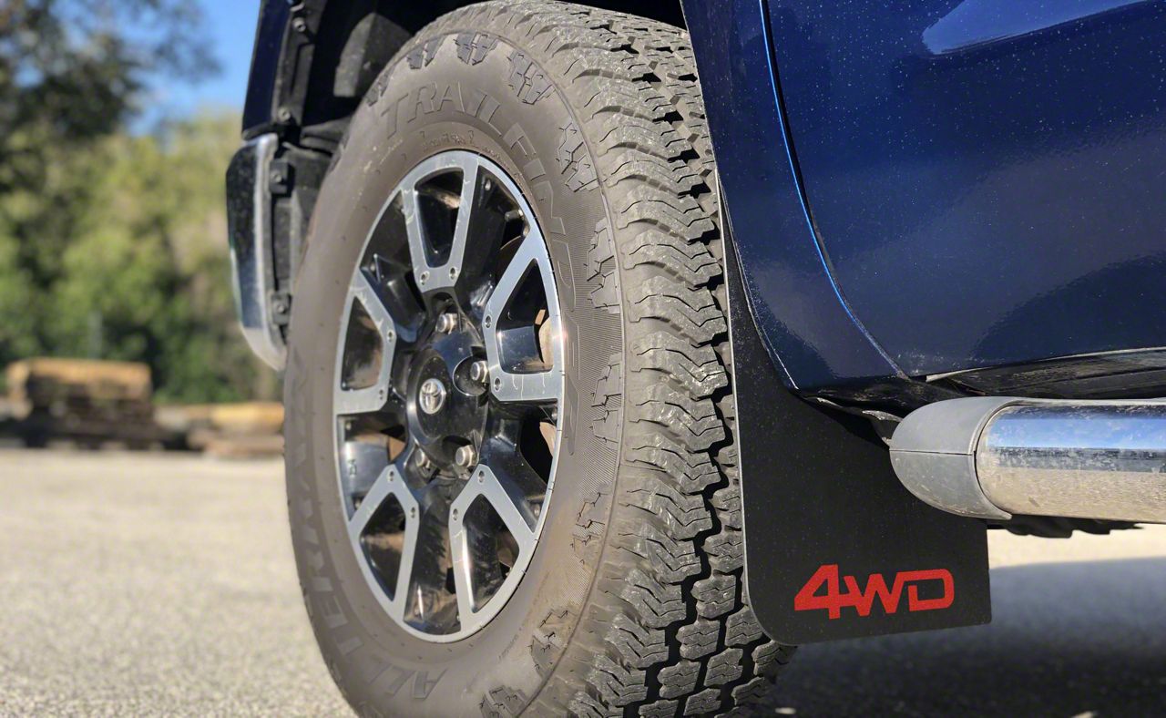 Application. These Mud Flaps with TRD Red 4x4 Logo for the Front is made for use on 2014-2021 Toyota Tundra models.