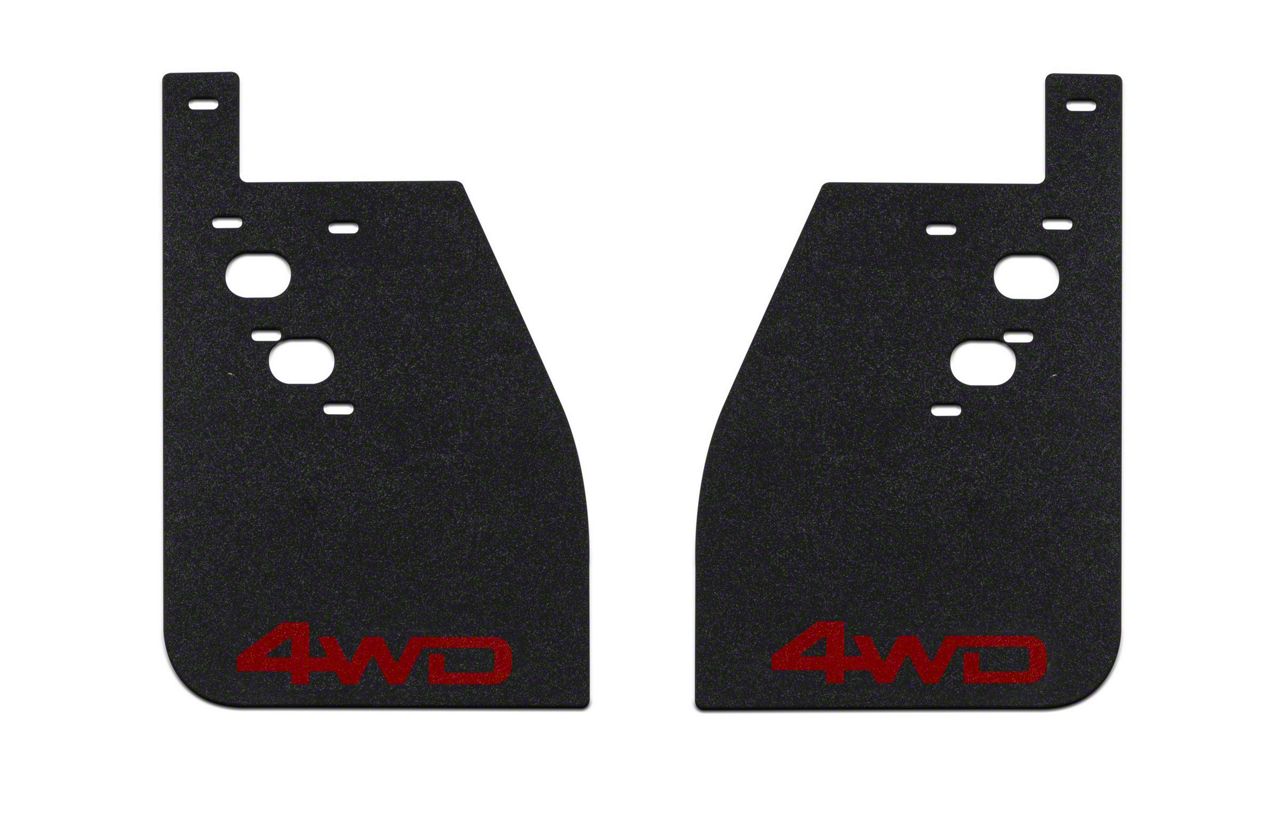 Stops Debris from Causing Dents and Scratches. One of the challenges truck owners face regularly is the amount of debris their tires kick up when on or off the road. This debris can cause damage such as dents and scratches, which can be very expensive to repair. Avoid such a costly problem by installing these Mud Flaps with TRD Red 4x4 Logo for the Rear on your ride. These flaps not only help stop debris from hitting the sides of your truck but also add a stylish flair to your ride.