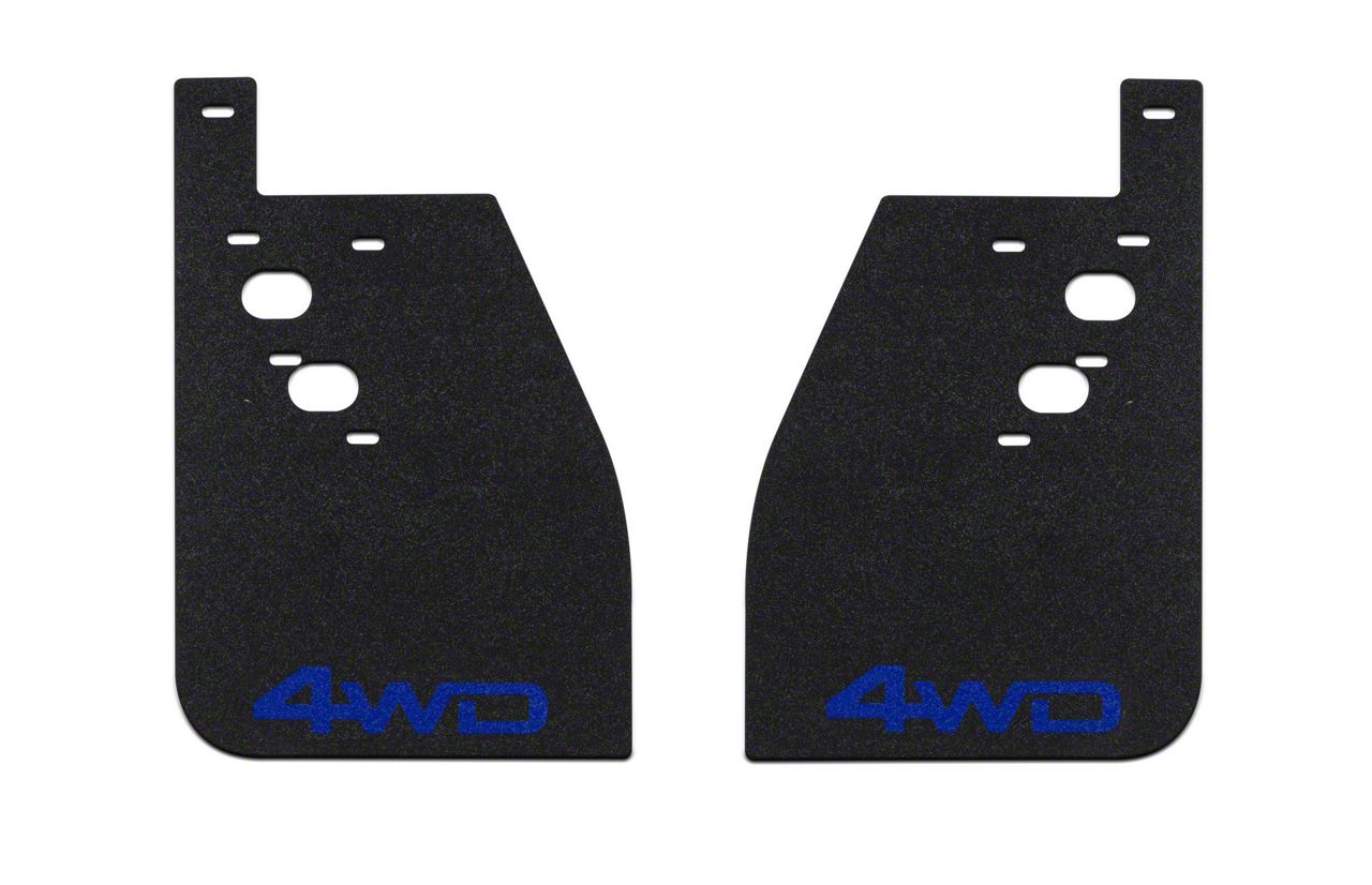 Protect Your Ride From Flying Debris. To stop flying debris kicked up by your tires from damaging your ride, you need some form of protection like these Mud Flaps with VooDoo Blue 4x4 Logo for Rear tires. These flaps help keep the debris that flies off your tires from hitting the side of your ride, preventing expensive scratches and damage from happening. Aside from protection, these flaps also add some style to your ride with their eye-catching black and blue combo.