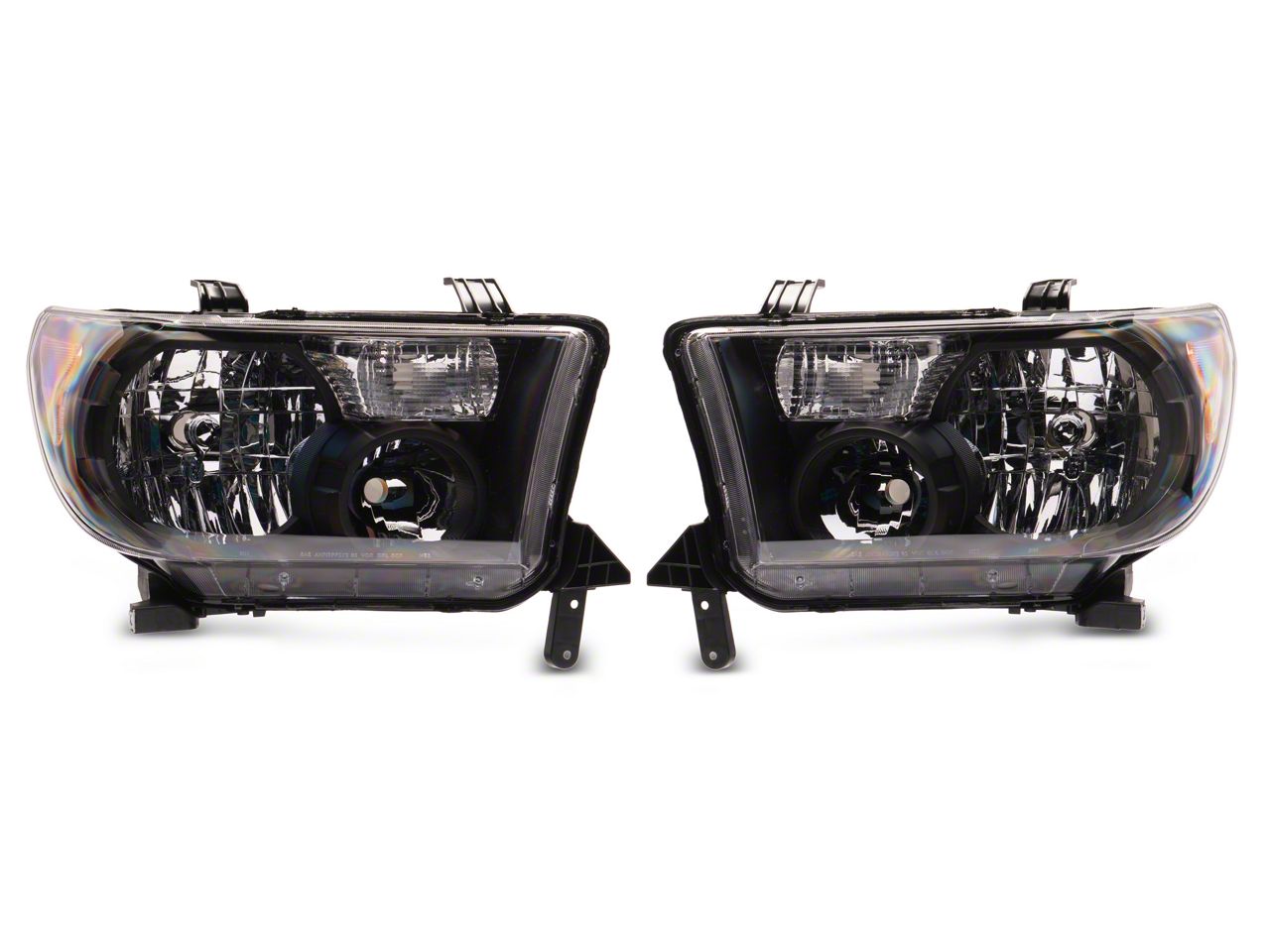Application. These Black Housing Clear Lens Headlights are a direct fit for all 2007-2013 Toyota Tundra Models which do not have headlight washers installed.