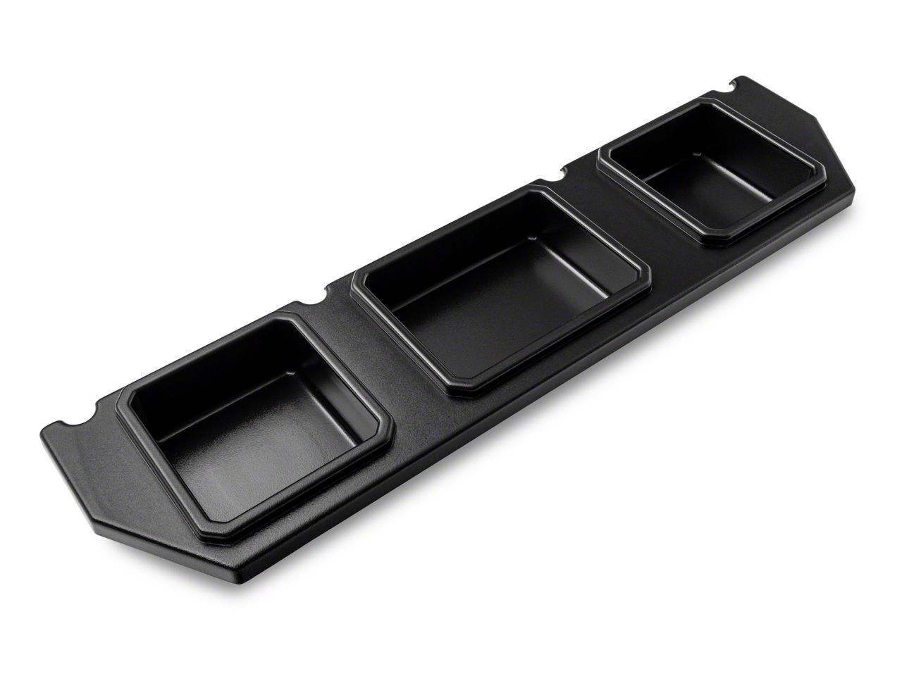 Rear Under Seat Storage. The Plastic Rear Under Seat Storage offers a practical and organized storage solution for the rear area under the seat. It securely holds tools and accessories in three distinct compartments, maximizing the use of otherwise unused space while maintaining easy access and a tidy appearance. This storage unit seamlessly integrates with the vehicle’s existing seat structure, with the seat folding over to act as a noise-preventing lid.