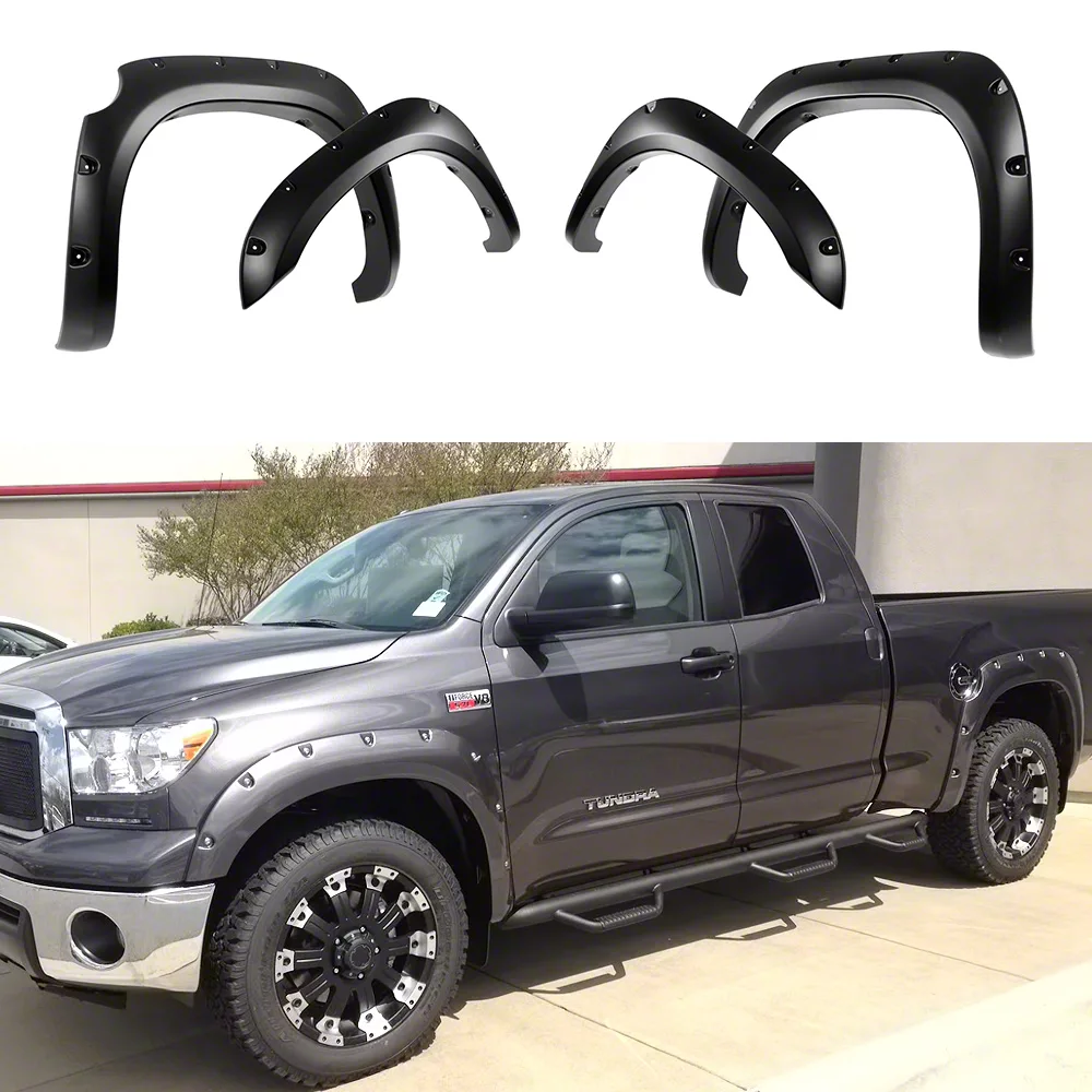 Application. These Pocket Dimple Style Fender Flares in Smooth Black are made for use with 2007-2013 Toyota Tundra models.