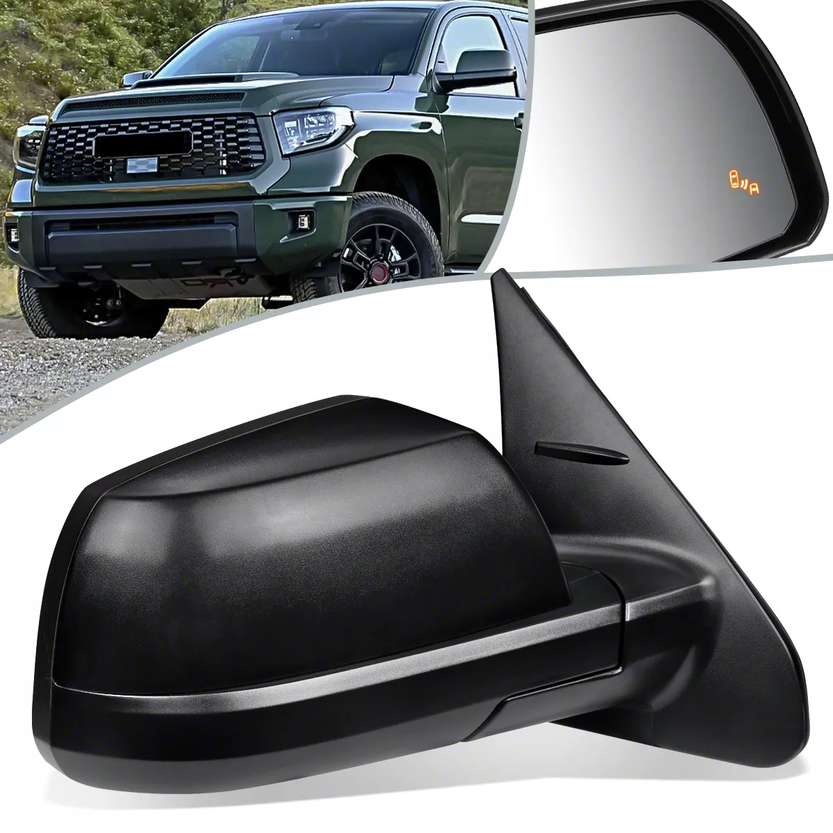 Application. The Powered Heated Manual Folding Mirror with Blind Spot Detection fits 2014-2021 Tundra models.