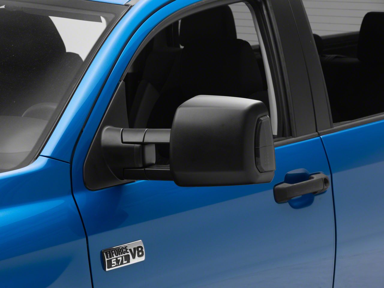 Increase Awareness while Towing. These Powered Heated Manual-Folding Mirrors in Textured Black increase driver awareness while towing, letting the driver see easily down the side. When your Tundra's stock mirrors need are damaged or looking ragged and you need something to help during towing, these will provide the perfect replacement.