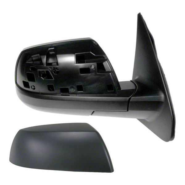 Premium Replacement Mirror. The Powered Heated Mirror with a Textured Black finish for the passenger side is designed to restore the original functionality and appearance of your vehicle's side mirror. It provides clear visibility through electric adjustment and heated features, enhancing safety and convenience in various weather conditions.