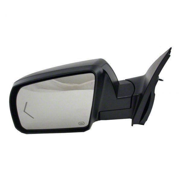 Premium Replacement Mirror. The Powered Heated Mirror with Turn Signal; Flat Black; Driver Side is designed to restore full functionality to your vehicle's side view mirror. This mirror assembly provides electric adjustment, heating capabilities to prevent fogging and icing, and integrated turn signals for enhanced safety. It ensures you maintain clear visibility and proper signaling during driving, essential for both everyday use and driving in adverse conditions.
