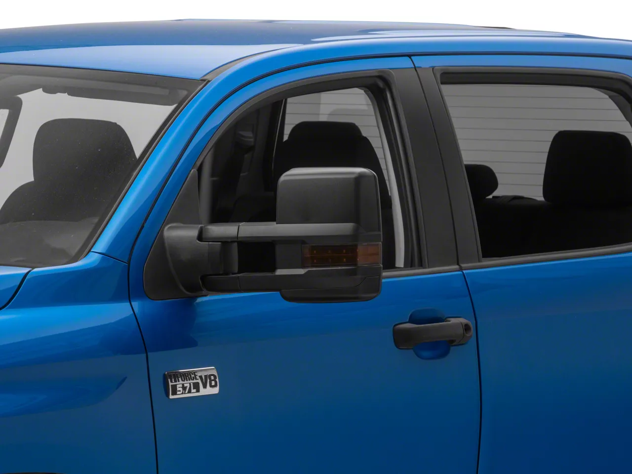 Enhanced Towing Visibility. These Towing Mirrors are designed for 2007-2021 Toyota Tundra models, providing improved visibility and safety features like blind spot detection and turn signals. They are powered and heated to prevent fogging, ensuring a clear view in various weather conditions.