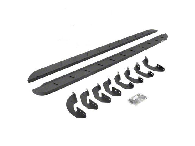 Description. The RB10 Slim Line Running Boards offer the same heavy duty toughness as the original RB Series, but with a slimmer design that fits tighter along the cab for increased ground clearance when off-roading. Constructed from 16-gauge zinc-coated galvanized steel, the Raptor-inspired boards were built to protect your panels from ?ying debris while providing a full-length step platform. The classic louvered design is four inches across at its widest point (compared with six inches of the original RB10) and are offered in cab-length sizes that fit most popular trucks, Jeeps and SUVs. The RB10 Slim Line is available with a protective bedliner coating or textured black powder coat finish that carries a 5-year limited warranty.
