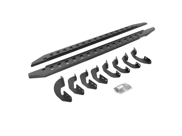 Patent Pending Design. The Patent Pending Cab Length design guarantees an optimal fit and adds to the vehicle's visual appeal. Featuring a generous 7.50-inch wide step area, they offer convenience and safety for entering and exiting your vehicle. Coated in a protective Bedliner Coating, these running boards are built to resist corrosion and maintain their sleek appearance.